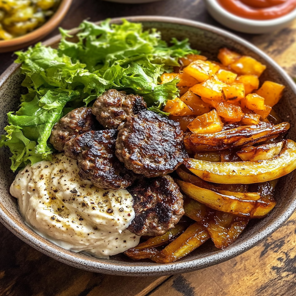 Burger Bowls with Caramelized Onion Aioli are your new best friend when it comes to satisfying cravings and impressing friends. Imagine a deliciously juicy burger, all the fixings you love, but without the bun weighing you down—a bowl full of flavor and fun awaits! explore Mediterranean salad recipes.