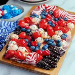 For flair, sprinkle some edible glitter or stars on top if you’re feeling extra festive. Now step back and admire your masterpiece; you’ve turned simple ingredients into an enchanting dessert board fit for celebrating freedom!