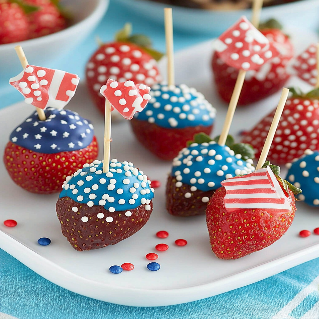 In summary, Patriotic Chocolate Dipped Strawberries offer a fun and delicious way to celebrate national events with style. With simple ingredients and easy preparation methods, you can create these eye-catching treats in no time. Customize your strawberries with various chocolates and toppings to suit your taste preferences. Remember to store them properly for maximum freshness when planning your next gathering or holiday celebration. Enjoy making these delightful snacks while showcasing your patriotic spirit!
