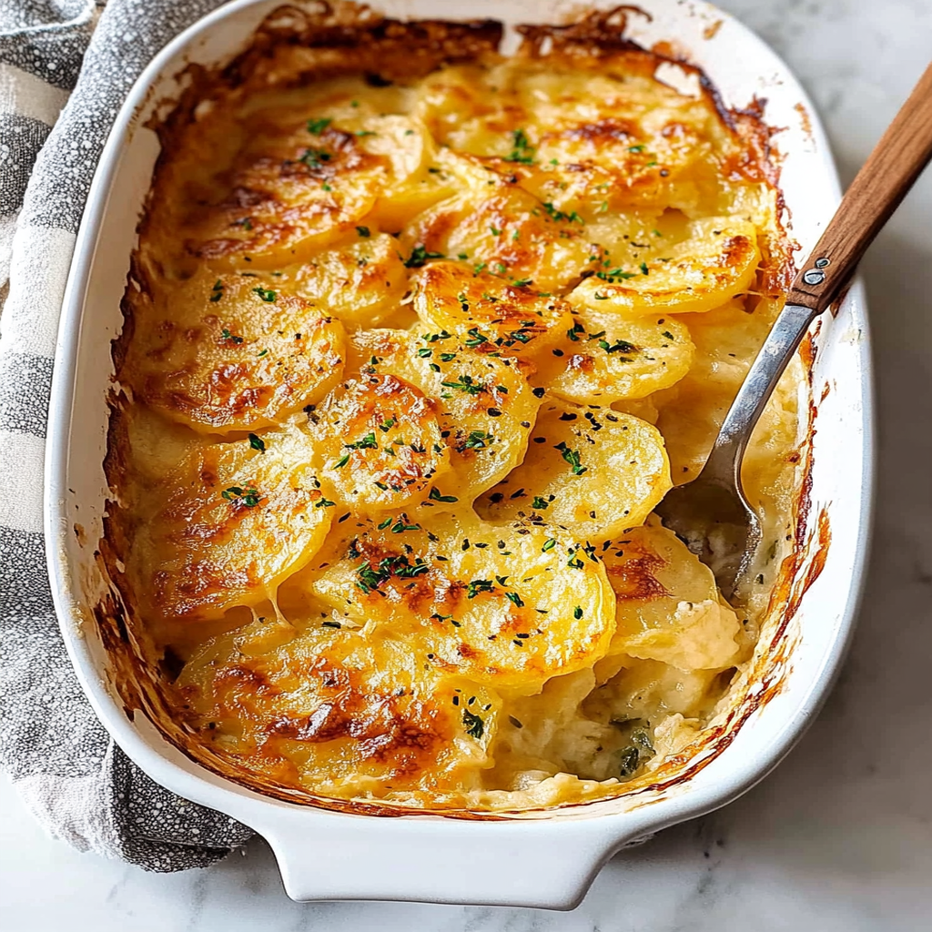 Keywords: - Use a mandoline slicer for even potato slices to ensure uniform cooking. - Experiment with different cheeses like fontina or mozzarella for unique flavors. - Consider adding sautéed onions or mushrooms between layers for an extra depth of flavor.