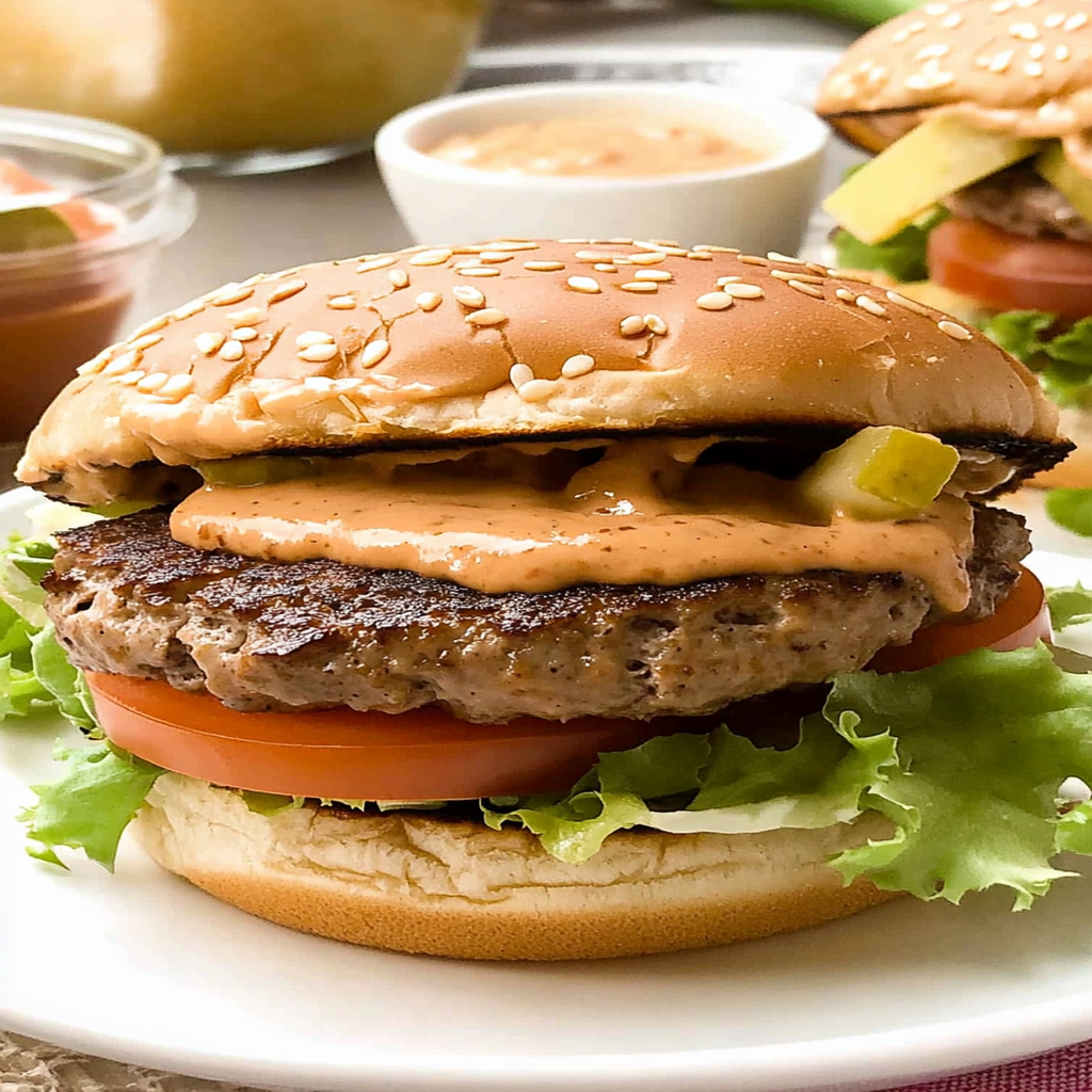 Classic Smash Burgers with Secret Sauce are juicy, flavorful burgers made by smashing ground beef into a hot skillet or griddle. This cooking technique creates a crispy exterior while keeping the inside tender and juicy. The secret sauce typically includes mayonnaise, ketchup, pickles, and spices that add a tangy kick to each bite. perfect side with burgers A perfect combination of grilled onions and cheese enhances the overall experience, making these burgers a crowd favorite for backyard barbecues and casual weeknight dinners.