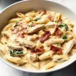 Making Creamy Chicken Bacon Ranch Pasta typically takes around 30 to 35 minutes from start to finish. The time includes cooking the pasta, sautéing the chicken and bacon, and mixing all the ingredients together. It’s a quick recipe that’s perfect for busy weeknights when you want something delicious without spending hours in the kitchen. Once you try this easy recipe, it may become one of your go-to meals! For more inspiration, check out this Philly Cheesesteak Pasta recipe.
