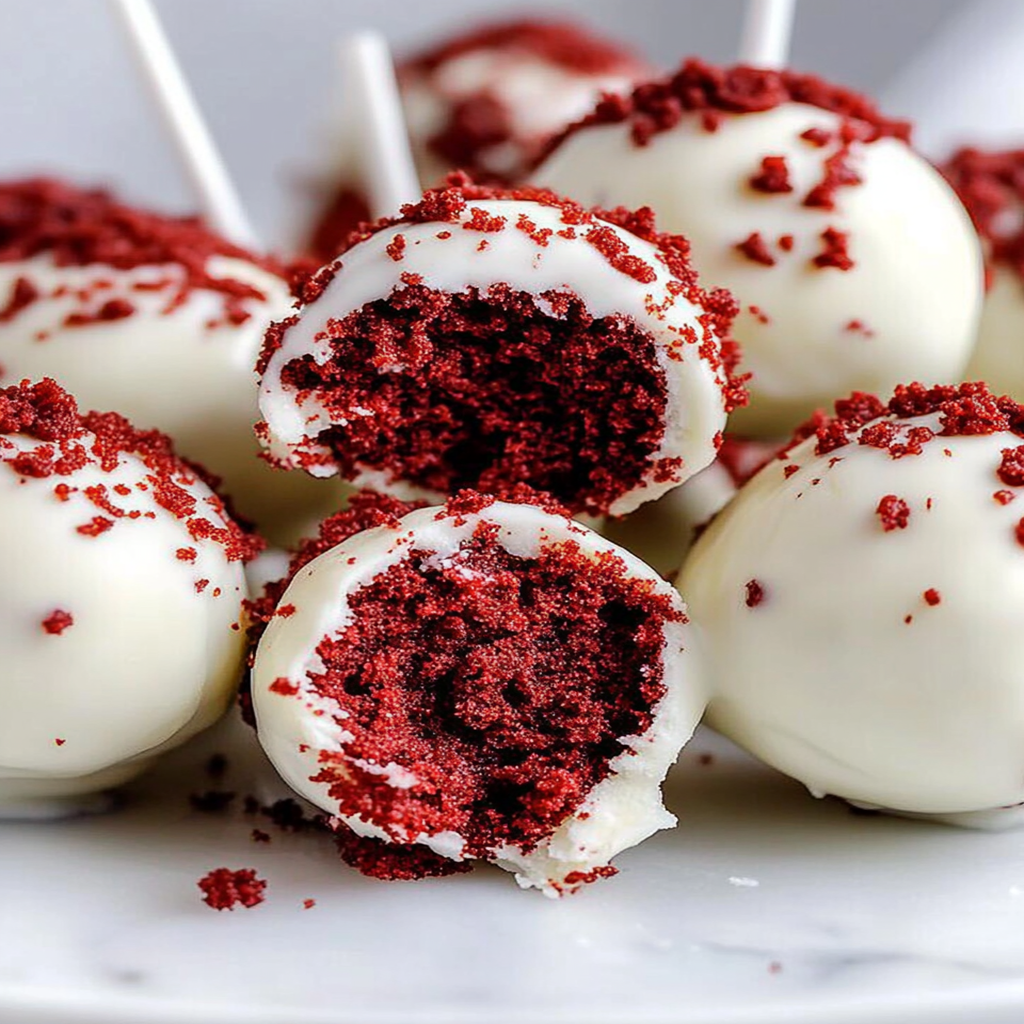 Red Velvet Cake Pops are delightful, bite-sized treats made from red velvet cake and cream cheese frosting. They are shaped into small spheres, coated in chocolate or candy melts, and served on sticks. These pops are perfect for parties, celebrations, or as a sweet treat for any occasion. perfect summer salad pairing The rich flavor of red velvet combined with the creamy frosting creates a deliciously moist cake that is irresistible.