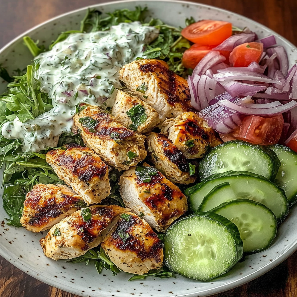 Savor the vibrant flavors of Spicy Mediterranean Chicken with Creamy Cucumber Salad. This dish features juicy, grilled chicken marinated in zesty spices, perfectly complemented by a refreshing creamy cucumber salad. Ideal for any occasion, it balances heat and coolness, providing an unforgettable culinary experience that transports your taste buds to the Mediterranean.