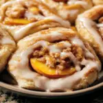 Start by preparing the dough, allowing it to rise until it doubles in size. While that’s happening, cook the peaches with cinnamon and sugar. Roll out the dough, spread the peach mixture, and then cut into rolls. Bake until golden brown and aromatic.