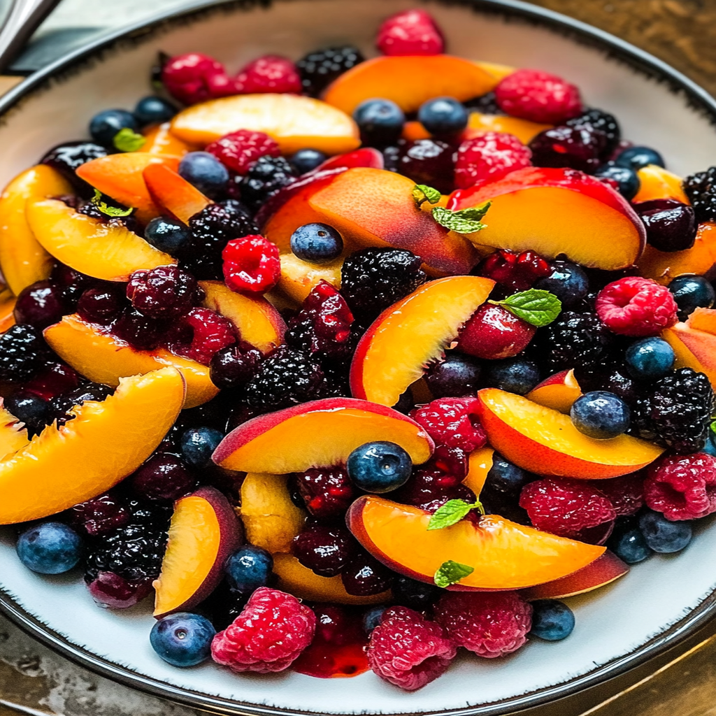 Peach Berry Fruit Salad is a refreshing summer treat that showcases the delightful combination of juicy peaches and tangy berries. This vibrant medley is not only visually appealing but also bursting with flavors that evoke sunny days and fun gatherings. Perfect for picnics, barbecues, or as a light snack, this fruit salad is easy to prepare and will impress family and friends alike. Experience the essence of summer in every delicious bite!