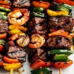 Yes! You can prepare grilled steak and shrimp kabobs in advance to save time during meal prep. Marinate the steak and shrimp separately for a few hours or overnight in the refrigerator. Assemble the kabobs just before grilling to keep everything fresh. If you prefer, you can even skewer them a day ahead; just store them covered in the fridge until you’re ready to cook.