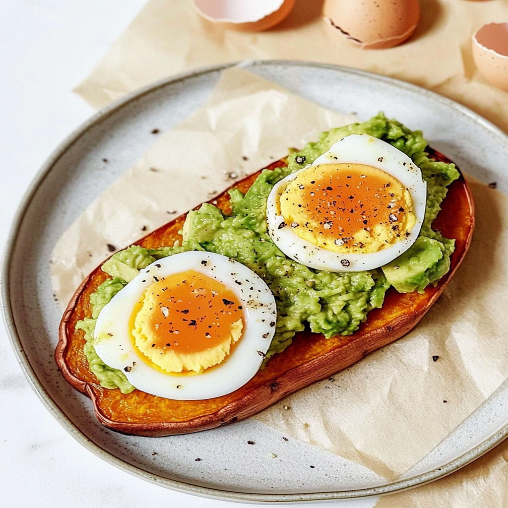 In conclusion, Easy Sweet Potato Toast – with mashed avocado + eggs is a nutritious and versatile dish that fits perfectly into any meal plan. It combines the health benefits of sweet potatoes, healthy fats from avocados, and protein from eggs to create a filling option that satisfies hunger while nourishing the body. avocado toast with soft boiled eggs Whether enjoyed as breakfast or a snack, this simple recipe allows for customization based on personal taste preferences. Try it today and discover how easy it is to incorporate wholesome ingredients into your diet!