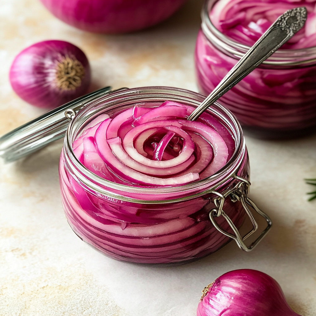 Pickled red onions are a vibrant and tangy condiment that can elevate any dish. With their sweet and sour profile, they add a delightful crunch to tacos, salads, and sandwiches. Not only are they quick to prepare, but they also bring an explosion of flavor to your meals. This easy recipe requires minimal ingredients, making it perfect for beginners and experienced cooks alike. Enjoy the beautiful color and zesty taste of pickled red onions that transform everyday dishes into culinary delights.