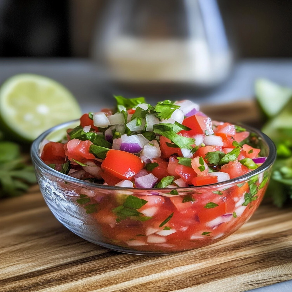 Pico de Gallo, also known as Salsa Fresca, is a fresh and zesty salsa that packs a punch with every bite. Made with ripe tomatoes, vibrant lime juice, fragrant cilantro, and spicy jalapeños, this quick and easy recipe comes together in just 15 minutes. Perfect for dipping tortilla chips or topping tacos, it’s a must-have at summer gatherings and cozy nights alike. Experience the freshness of homemade Pico de Gallo and bring a fiesta to your table!